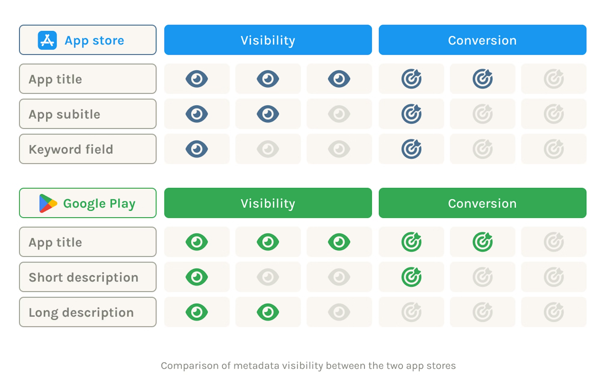 - App description: SEO 에도 반영된다. 15개 정도의 타겟 키워드를 정하고 이를 4~5번 정도씩 반복 해 주자. Keyword density 체크하고, Keyword stuffing 은 피한다. 사람이 읽을 수 있게 쓰자. 첫 255자 / 첫 3줄 (에 킬러 feature 와 CTA 를 포함한다 (더 보기 없이 노출 되는 부분)