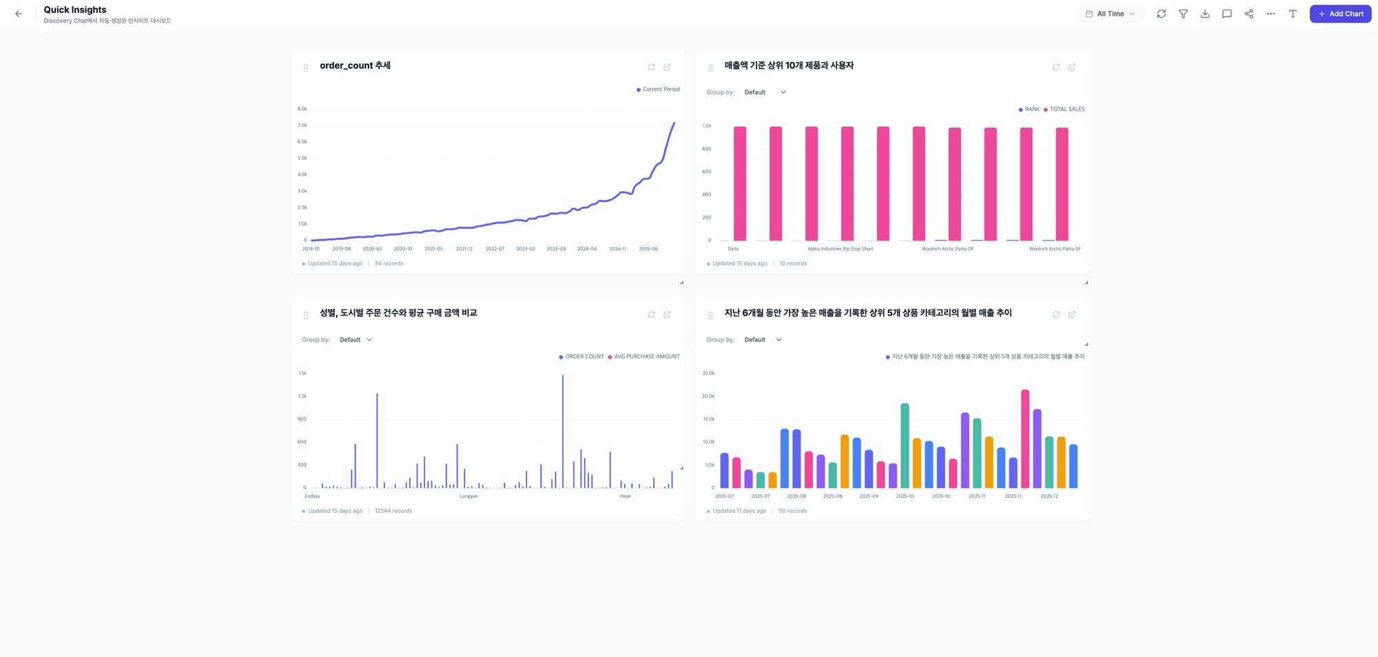 이런 복잡한 비교 쿼리를 2턴 만에, 추가 질문 없이 생성했습니다.