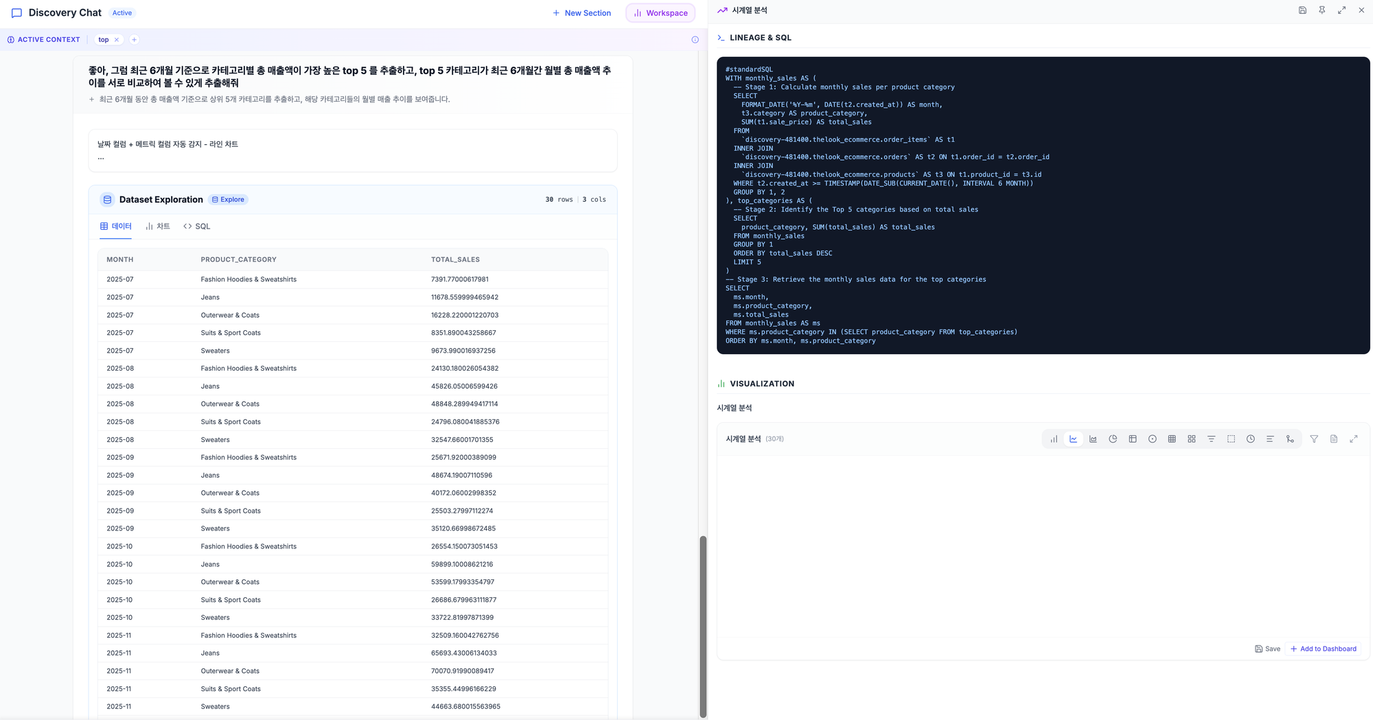 "지난달이랑 비교해서 어때?" 라는 모호한 질문을 받고, v3.1은 자동으로:CTE(Common Table Expression)로 당월/전월 분리주문 수, 아이템 수, 고객 수, 배송 건수 4가지 지표 비교증감률까지 계산해서 한 번에 제공